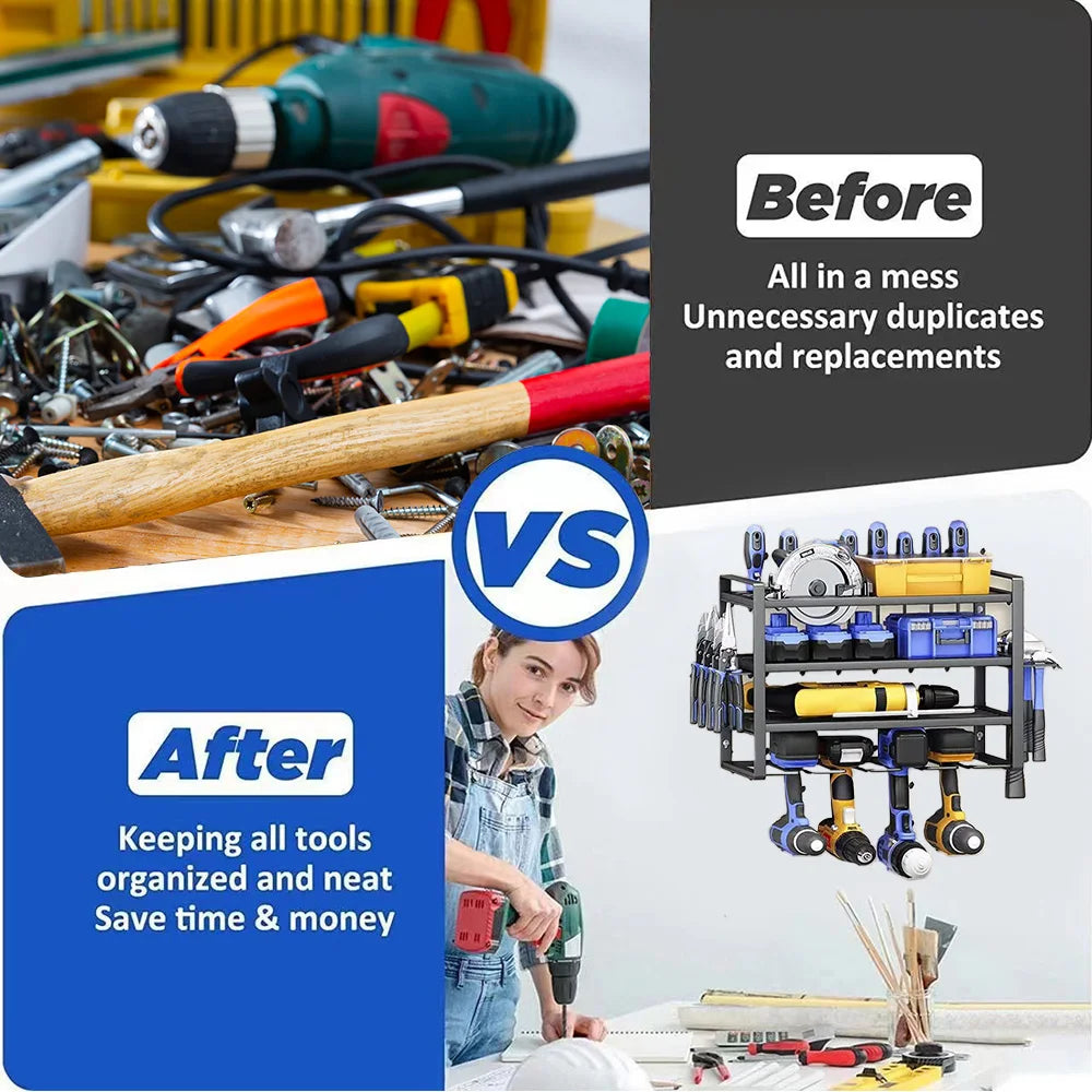 Heavy-Duty Wall-Mounted Power Tool Organizer – Metal Rack for Workshop, Garage, or Shed