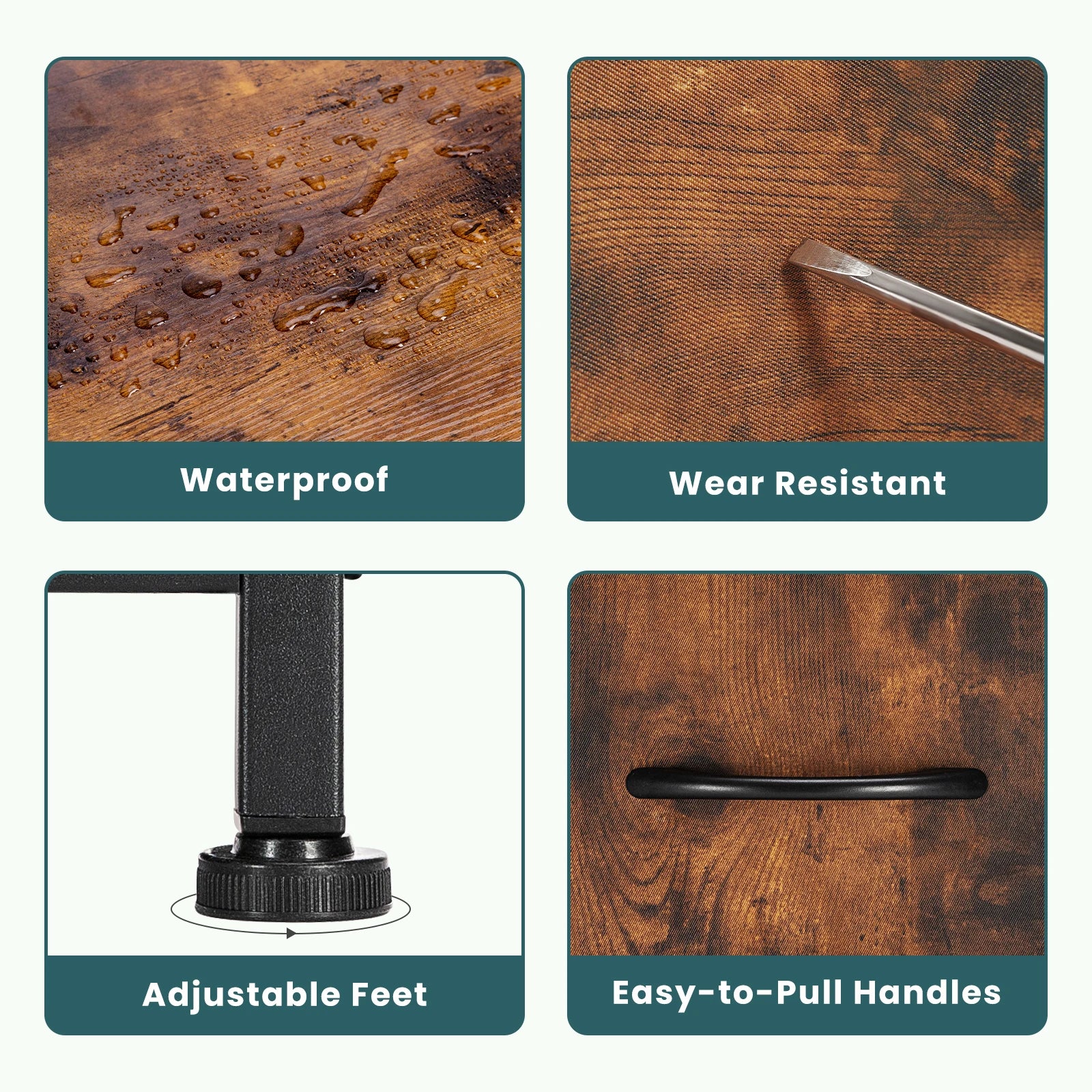 【Safe & Sturdy】 This chest of drawers uses a thickened metal frame to keep the fabric dresser stable, with 4 adjustable feets to protect your floor from scratches, and you can adjust the balance of the dresser in small areas. Using the anti-tilt device, an auxiliary feature can be added if the dresser is attached to the wall, as it prevents falling caused by uneven floors or children climbing.